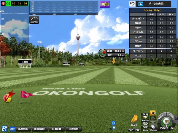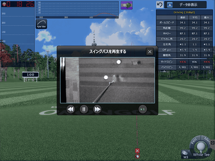 最大420ydまで計測可、実際の弾道同様フック、スライス、ドロー、 フェード、バックスピンなど、リアルに再現します。